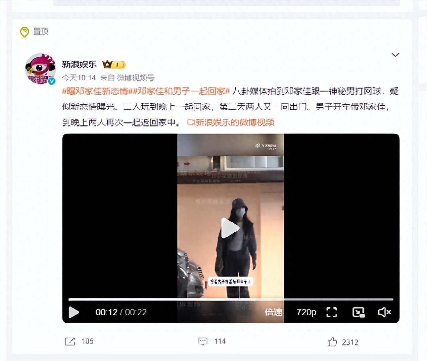 从媒体拍的视频看,她这次恋爱是真挺甜的。我瞅着男方说不定比她小,因为俩人去的是室内运动馆打网球,这种活动还挺显年轻活力的。男方脸被贴纸挡了,但看身形应该挺精神的。打了一会儿俩人都气喘吁吁的,隔着球网就聊上了,邓家佳看他那眼神,满是笑意,就直勾勾盯着人家笑,那爱意藏都藏不住。 他俩一直打到晚上,然后坐同一辆车回了家。第二天一早又一块儿出门,男的先拎着东西上了车,邓家佳背着包、戴着帽子,慢悠悠跟上去。记者在停车场等到晚上,发现俩人又一起回来了,这关系可不就是恋爱嘛。